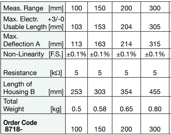 8718 Potentiometric Displacement Sensor