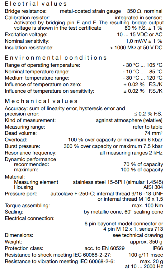 . Available range 0 - 1000bar to 0 - 5000bar