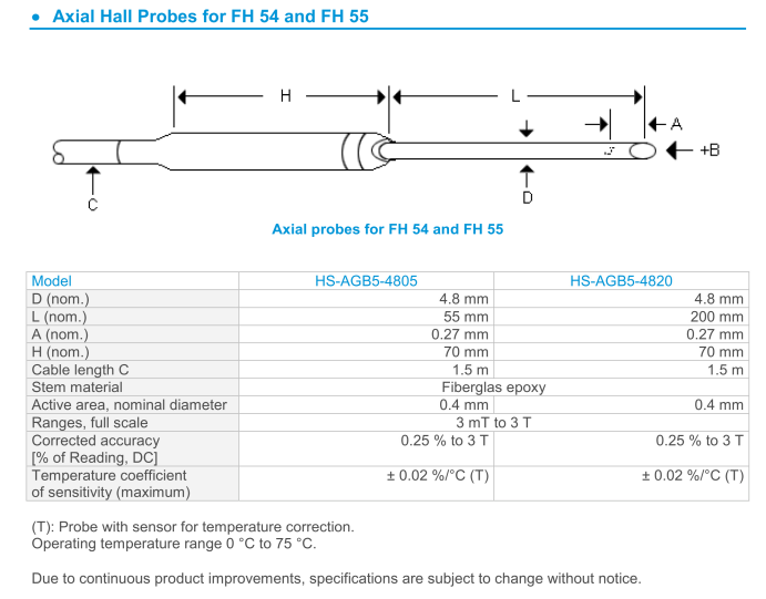 Hall Probes for FH54 and FH55