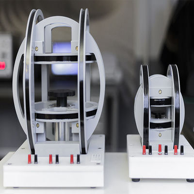 The Helmholtz coil refers to the arrangement of two identical conductor loops spaced one radius apart and wound, so that the current flows through both coils in the same direction. This winding generates an almost homogeneous magnetic field in the center of the structure with the primary component parallel to the axes of the two coils. Measurement of magnetic moment with a Helmholtz coil is a convenient way to test permanent magnet materials.