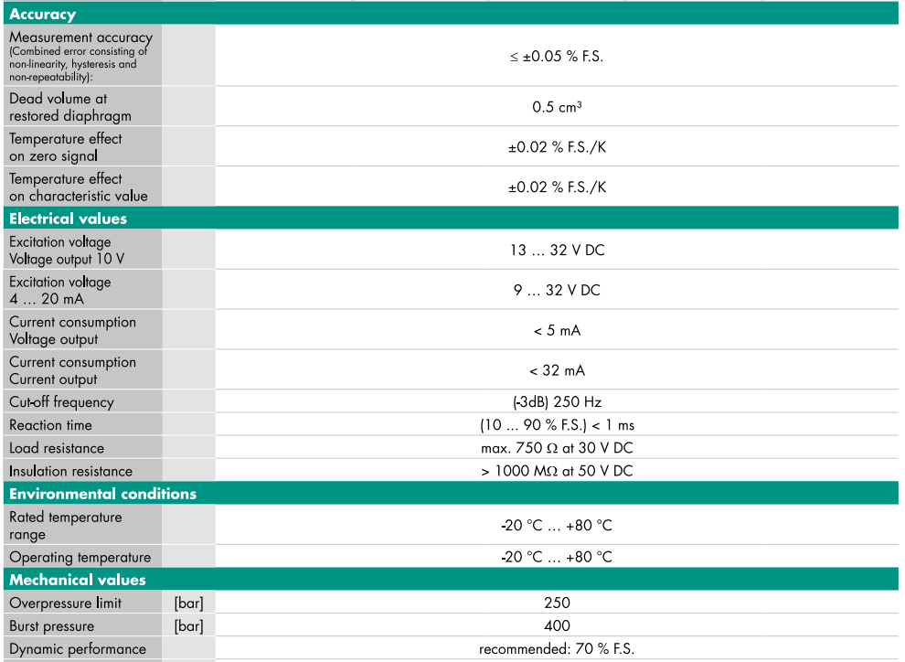 . Available range 0 - 0.1 bar to 0 - 200 bar