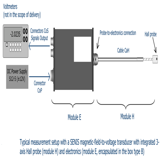 集成的霍爾元件有非常小的感測面積(100µm x 100µm),可提供很高的解析度,可量測非常微小的元件。模組E為使用磁矩霍爾探棒技術,可減少偏移,低頻雜訊和表面集膚效應。